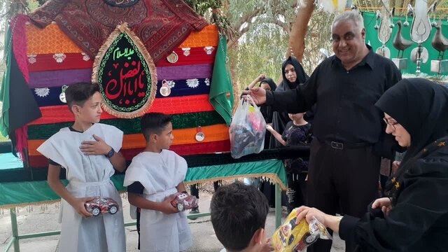 ششم مردادماه همزمان با روز عاشورا در منزل مرحوم «حسین رجبی» به کودکانی که همراه خانواده در مجلس روضه‌خوانی که در آن حجله‌بندان حضرت قاسم نیز برگزار می‌شود، حضور یافتند، اسباب‌بازی اهدا شد.